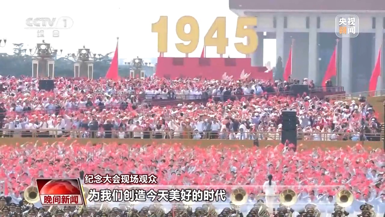 紀(jì)念大會現(xiàn)場觀眾:就像總書記說的“執(zhí)大象、天下往”,我覺得我們今天真的有能力、有擔(dān)當(dāng),去維護(hù)世界的繁榮與和平。同時(shí)我們也要銘記歷史,珍惜過去革命先輩、抗日英雄們創(chuàng)造的美好時(shí)代。在新時(shí)代,我們更應(yīng)該努力,踔厲奮發(fā),創(chuàng)造更加美好的未來。