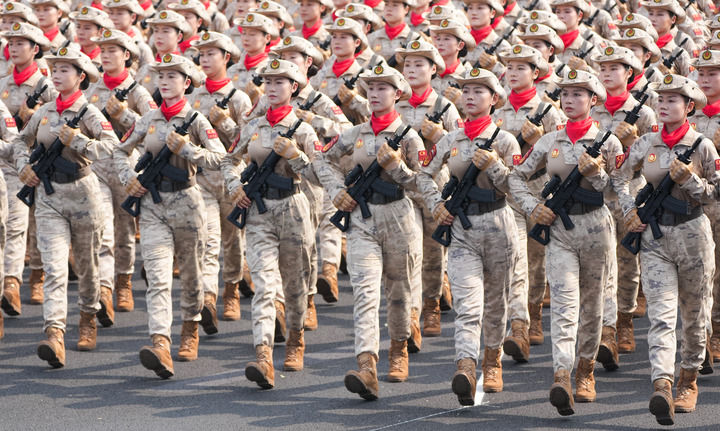 9月3日,天安門廣場。身著蛙式作訓服、手握鋼槍的女民兵,身姿挺拔、英姿颯爽。她們來自當年的主要抗日根據地。這是民兵首次亮相以紀念抗戰(zhàn)為主題的閱兵活動。