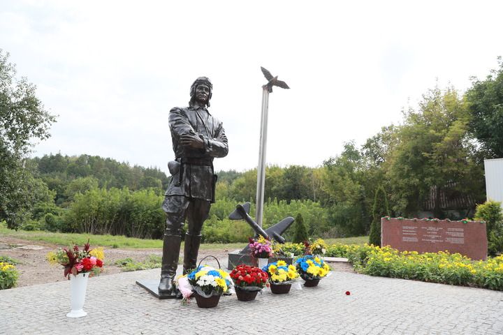 烏克蘭第聶伯河沿岸,秋日的陽光灑在庫里申科學(xué)校對面的廣場上。身著飛行服的蘇聯(lián)空軍志愿隊重型轟炸機大隊少校大隊長庫里申科的雕塑目視遠方,在他身邊,一只銅制“蘇聯(lián)雄鷹”展翅翱翔。