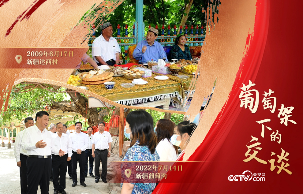 這段對(duì)話,發(fā)生于2022年7月14日。那天下午,習(xí)近平總書記來到新疆吐魯番的葡萄溝,與來自天南海北的游客親切交談。