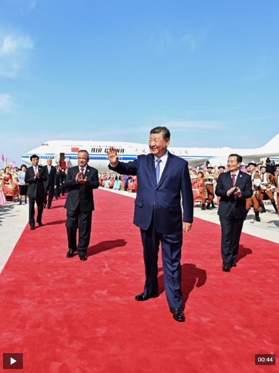 中共中央總書記、國(guó)家主席、中央軍委主席習(xí)近平率中央代表團(tuán)23日下午乘專機(jī)抵達(dá)烏魯木齊,出席新疆維吾爾自治區(qū)成立70周年慶?;顒?dòng)。習(xí)近平等在機(jī)場(chǎng)和烏魯木齊市區(qū)受到新疆各族群眾的熱烈歡迎。