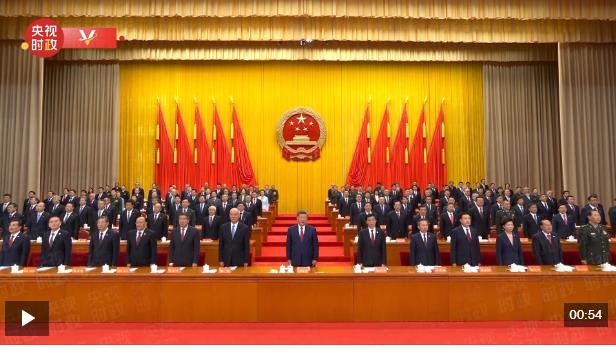 25日上午,新疆維吾爾自治區(qū)成立70周年慶祝大會(huì)在新疆人民會(huì)堂隆重舉行?,F(xiàn)場全體起立,高唱國歌。