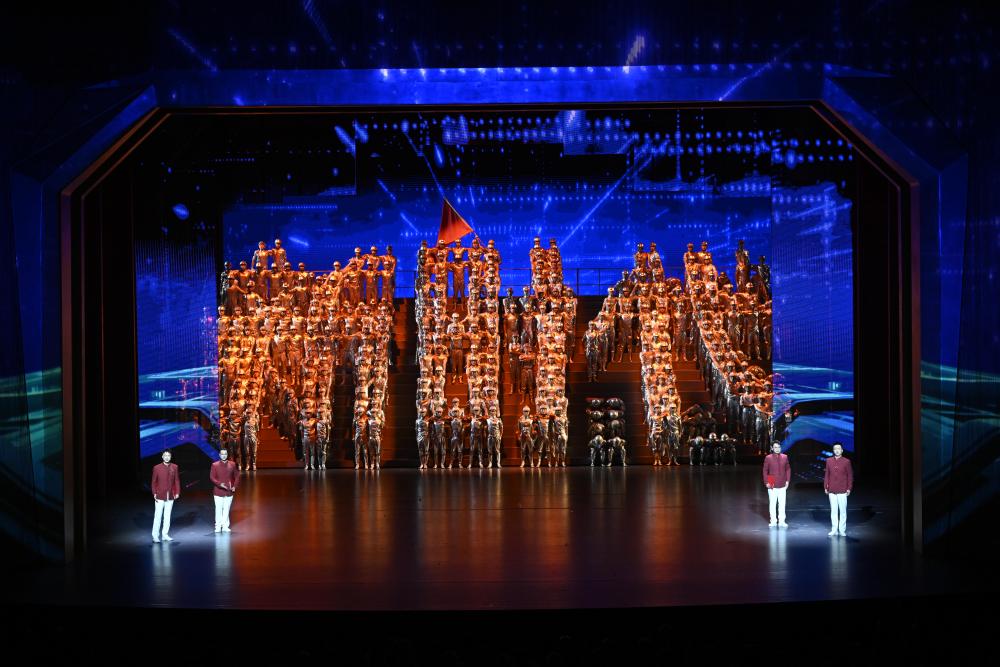 24日的文藝晚會(huì)《美麗新疆》中,創(chuàng)意詩舞畫《時(shí)代交響》,以絢麗變幻的聲光電,生動(dòng)描繪天山南北的日新月異。