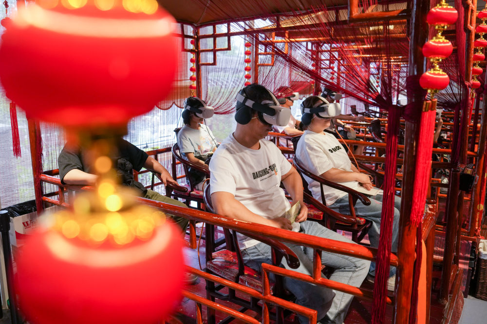 2025年5月18日,游客在蘇州拙政園體驗(yàn)VR漫游。當(dāng)?shù)乩脭?shù)字化手段,創(chuàng)造“數(shù)字云游”VR場(chǎng)景,打造“云游拙政園”“獅林園宇宙”“留園虛擬元宇宙”等項(xiàng)目,營造真實(shí)可感的虛擬空間,讓觀眾沉浸式感受蘇州園林的獨(dú)特魅力。近年來,蘇州不斷推進(jìn)“數(shù)字園林”建設(shè),在園林整體數(shù)字建模、園林要素?cái)?shù)據(jù)庫建設(shè)、園林“元宇宙”應(yīng)用場(chǎng)景開發(fā)等方面進(jìn)行探索,加快推動(dòng)“數(shù)字園林”成果全民共享。