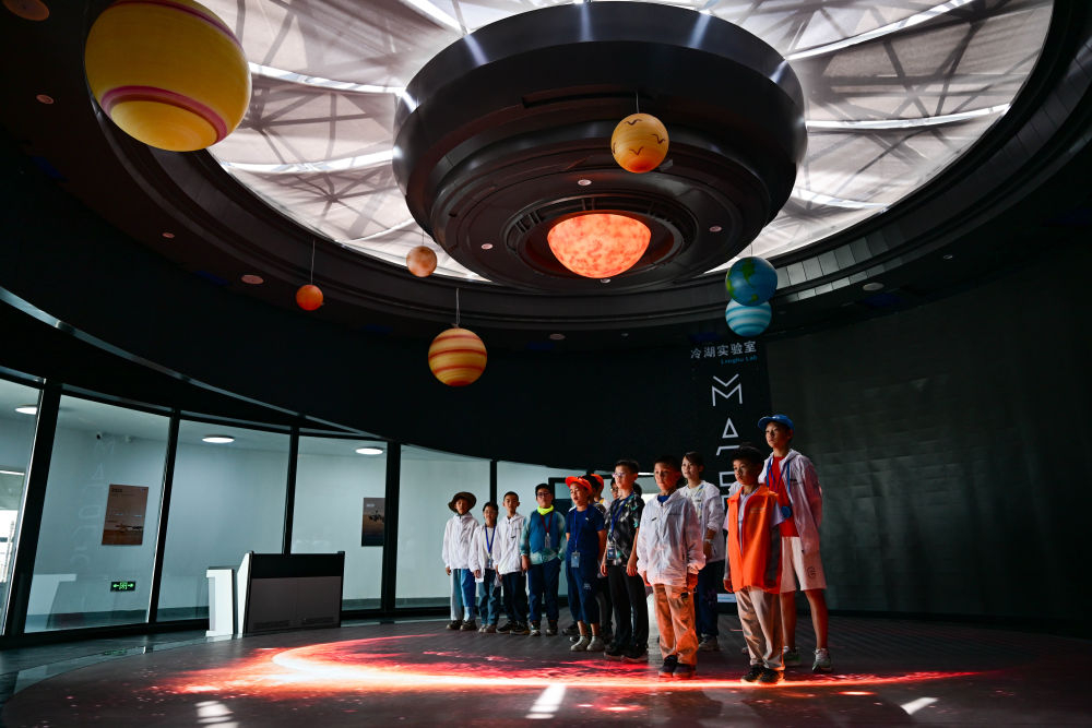 2025年7月29日,參加暑期研學(xué)的小朋友在青海省海西蒙古族藏族自治州冷湖鎮(zhèn)“冷湖實(shí)驗(yàn)室”學(xué)習(xí)天文知識(shí)。冷湖鎮(zhèn)曾是因石油而興、又因油盡而沉寂的工業(yè)遺址小鎮(zhèn)。然而,得天獨(dú)厚的地理?xiàng)l件,讓冷湖鎮(zhèn)成為理想的觀星地。近年來,當(dāng)?shù)匕l(fā)展科幻特色文旅,讓戈壁小鎮(zhèn)煥發(fā)新的生機(jī)。冷湖天文觀測(cè)基地引進(jìn)十余家科研單位的數(shù)十臺(tái)望遠(yuǎn)鏡,依托天文資源和戈壁奇景,打造火星實(shí)驗(yàn)室、黑獨(dú)山等“出圈”地標(biāo)。連續(xù)舉辦多屆的“冷湖科幻文學(xué)獎(jiǎng)”,更讓這片土地成為科幻創(chuàng)作的新高地。冷湖鎮(zhèn)以科幻點(diǎn)亮文旅新場(chǎng)景,也為中國西北工業(yè)小鎮(zhèn)的轉(zhuǎn)型探索出一條充滿想象力的新路徑。
