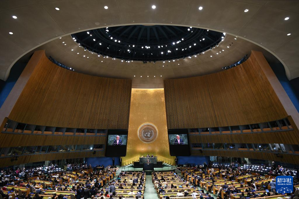 這是2025年9月22日在位于紐約的聯(lián)合國總部拍攝的聯(lián)合國大會紀念北京世婦會30周年高級別會議現(xiàn)場。新華社記者 李睿 攝