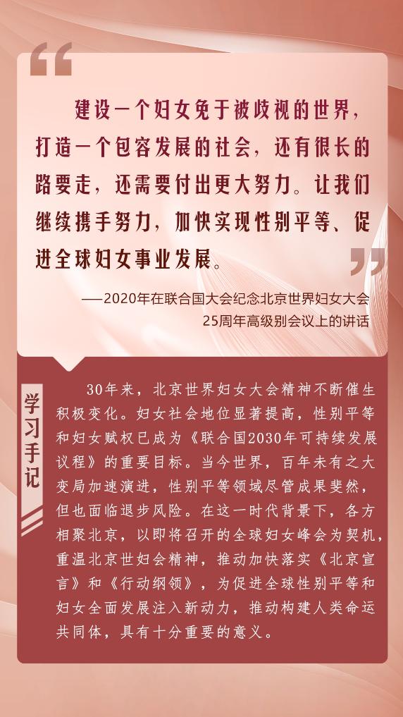 在全球婦女峰會即將舉行之際,我們重溫習近平總書記的重要論述,共同展望婦女發(fā)展的美好未來,期待全球婦女事業(yè)發(fā)展譜寫新的絢爛篇章。