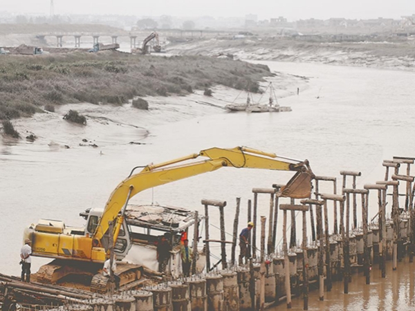 木蘭溪防洪工程建設(shè)現(xiàn)場(chǎng)。(資料照片)