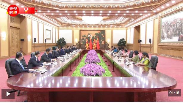 10月14日上午,國家主席習(xí)近平在北京人民大會堂會見來華出席全球婦女峰會的斯里蘭卡總理阿馬拉蘇里亞。