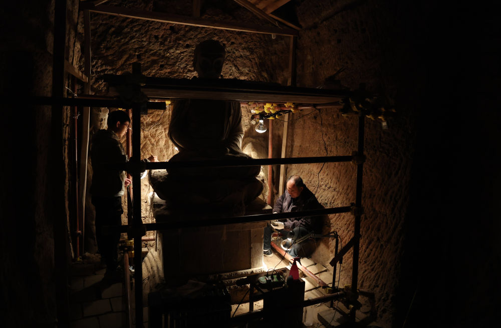 2024年11月2日,麥積山石窟藝術研究所保護研究室的文物修復師何舉在麥積山石窟133窟內修復塑像。近年來,麥積山石窟藝術研究所等文物保護部門持續(xù)加大對麥積山石窟的搶救性保護和預防性保護工作力度,積極探索現(xiàn)代科學技術手段與傳統(tǒng)文物修復技藝相結合的保護修復新路徑。截至目前,麥積山石窟已有80個洞窟完成整體保護修復工作。