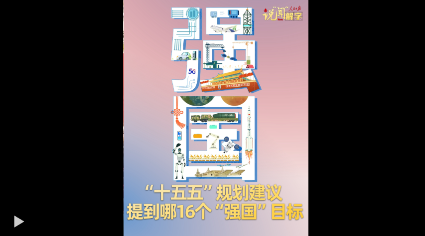 “十五五”規(guī)劃建議中提到了16個(gè)“強(qiáng)國(guó)”目標(biāo)。規(guī)劃建議聚焦哪些實(shí)際問題?我們將在哪些地方發(fā)力?一支視頻讀懂。