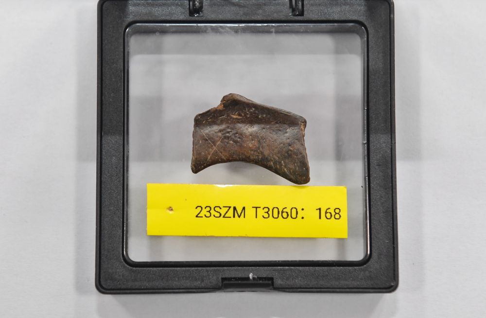 2023年12月5日拍攝的從四川資陽濛溪河遺址群出土的有X形劃痕的骨器。該遺址是國際罕見的同時(shí)包含豐富石器、動物與植物遺存的“全科型”遺址,入選了“2024年度全國十大考古新發(fā)現(xiàn)”。
