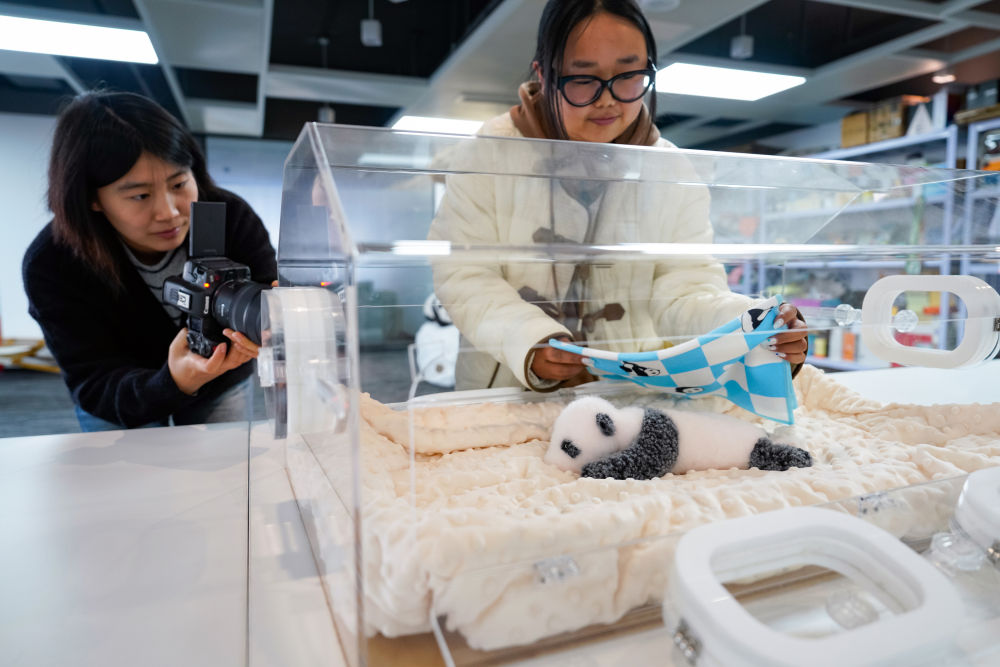 2024年11月20日,在位于四川省成都市的“熊貓工廠”總部,工作人員在為22日齡新生大熊貓幼崽高仿真玩偶產(chǎn)品拍攝短視頻。依托我國傳統(tǒng)非遺裘皮制作技藝,以不同年齡段的“和花”“萌蘭”“香香”“福寶”等“網(wǎng)紅”大熊貓為原型,運(yùn)用3D建模等技術(shù)開發(fā)出高仿真、超仿真玩偶,當(dāng)?shù)仄髽I(yè)已在全球50多個國家和地區(qū)累計(jì)銷售超過5萬只定制仿真大熊貓,也在短短幾年內(nèi)成長為年?duì)I收破千萬元的企業(yè)。