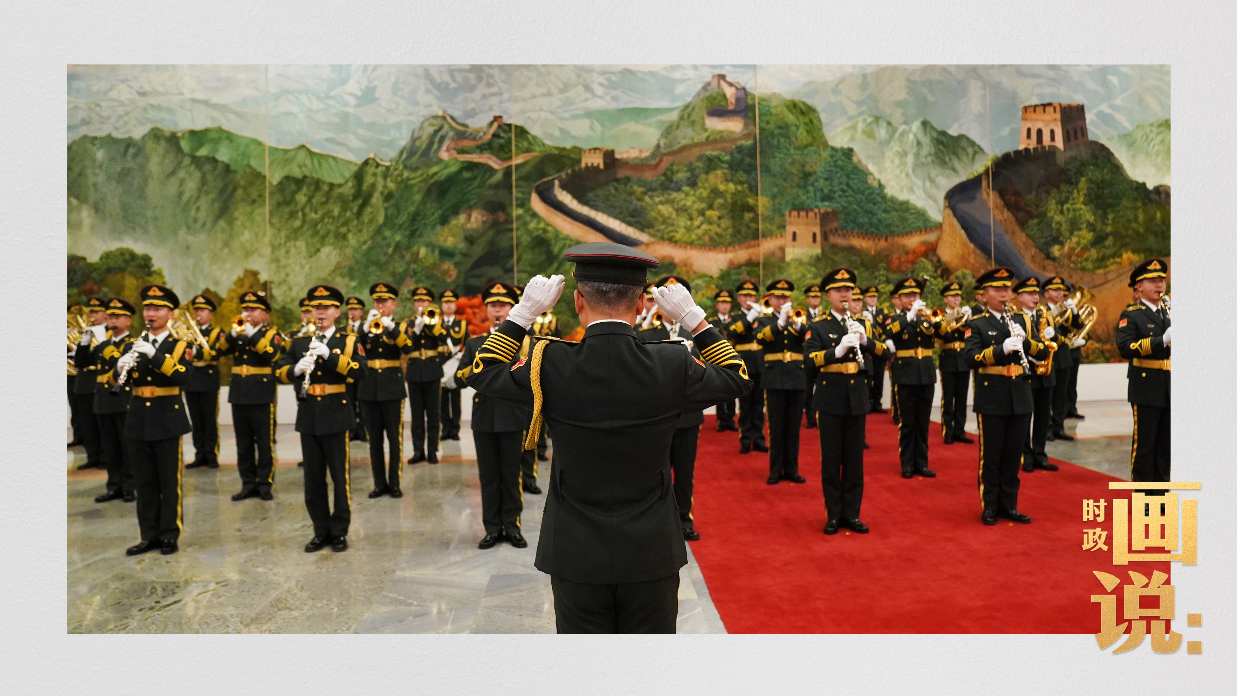 △馬克龍在習(xí)近平陪同下檢閱中國人民解放軍儀仗隊并觀看分列式