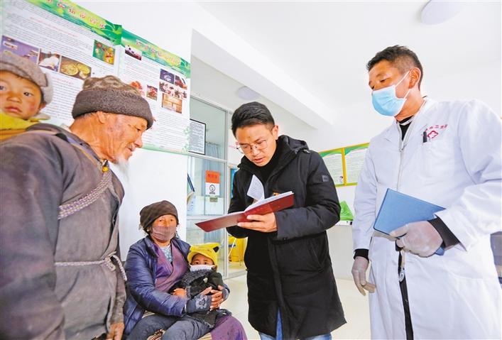當選十三屆全國人大代表以來,西藏山南市瓊結縣拉玉鄉(xiāng)黨委副書記江村,積極為農牧區(qū)醫(yī)療衛(wèi)生事業(yè)發(fā)展出謀劃策。在基層調研中,他最關心的是醫(yī)療衛(wèi)生室硬件設施和醫(yī)護人員結構等情況。在今年全國兩會上,江村將圍繞“加大對西藏基層醫(yī)療衛(wèi)生方面的支持力度”等提出建議。圖為江村(右二)深入拉玉鄉(xiāng)堆巴村衛(wèi)生室調研。記者 洛桑 次旺 攝