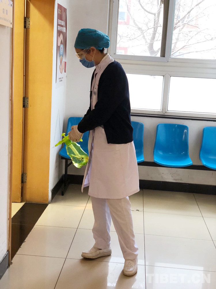 圖為醫(yī)護(hù)人員進(jìn)行日常消殺工作