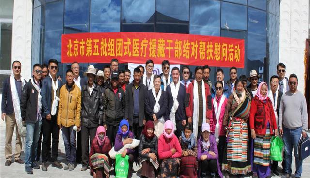 北京市第五批“組團(tuán)式”援藏醫(yī)療人才開展與當(dāng)?shù)厝罕娊Y(jié)對幫扶活動助力脫貧攻堅。圖為援藏醫(yī)療隊員與當(dāng)?shù)亟Y(jié)對群眾合影。