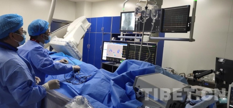 圖為開展西藏自治區(qū)首例三維心電標(biāo)測(cè)系統(tǒng)指導(dǎo)下預(yù)激綜合征及陣發(fā)性室上速射頻消融術(shù) 圖片由廣東援藏醫(yī)療隊(duì)提供