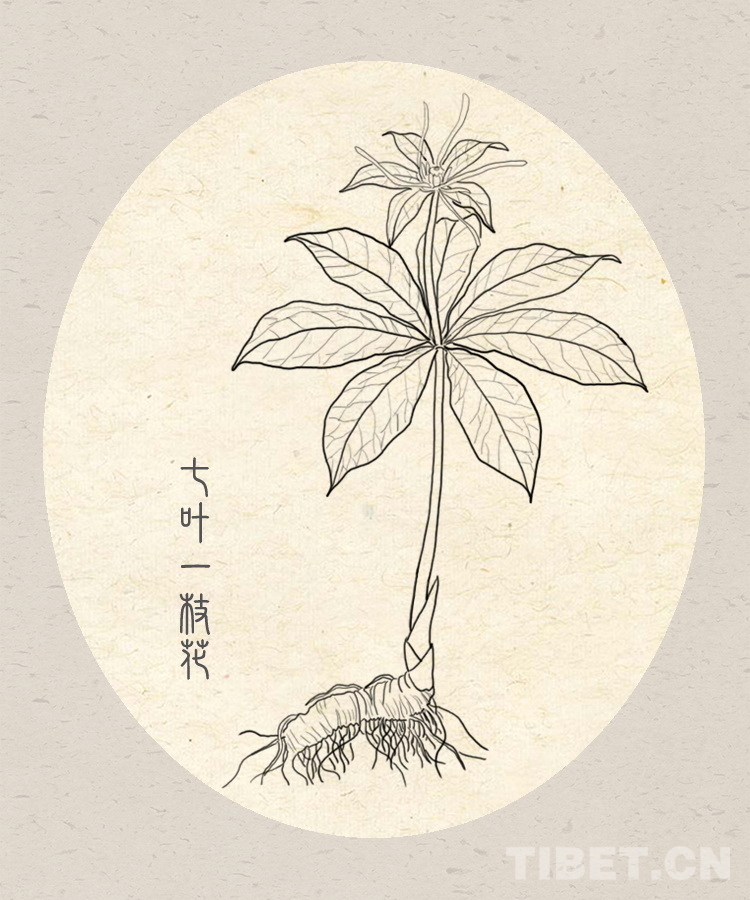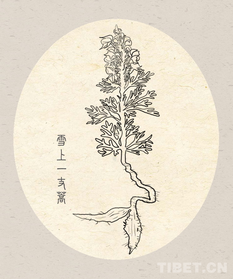 圖為手繪青藏高原上的藏醫(yī)藥材