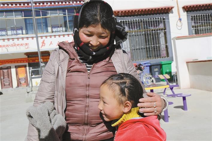 剛拆完石膏的髖關(guān)節(jié)脫位患兒索朗卓嘎高興地依偎在母親懷里?!∮浾?黃志武 攝