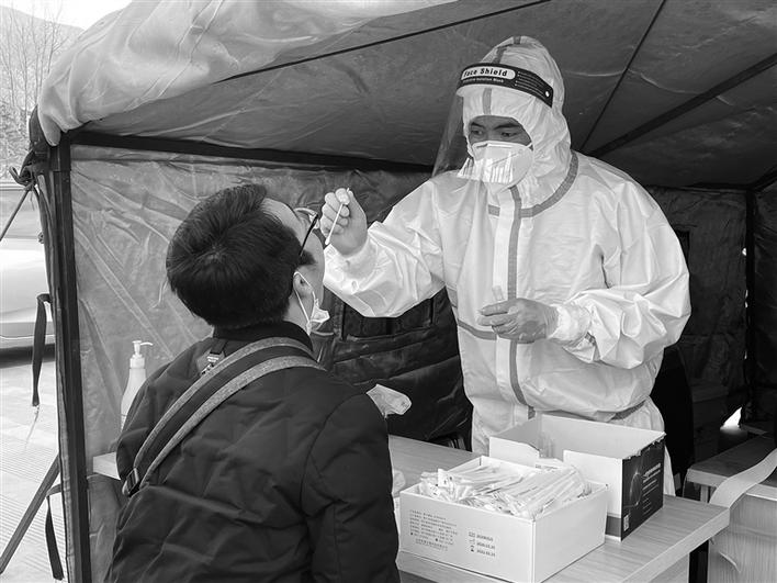 記者了解到,自2020年1月28日自治區(qū)第三人民醫(yī)院發(fā)熱門診成立以來,11名醫(yī)護人員便24小時輪流值班,堅守崗位。索朗旦增就是其中之一,作為專門負責(zé)核酸檢測的醫(yī)護人員,他每天需要穿著防護服、戴著口罩工作8個小時以上。索朗旦增告訴記者:“這一年多來,工作雖然很辛苦,但作為一名醫(yī)護人員,我們有義務(wù)、有責(zé)任守護市民健康,全力做好疫情防控工作,站好每一班崗。”