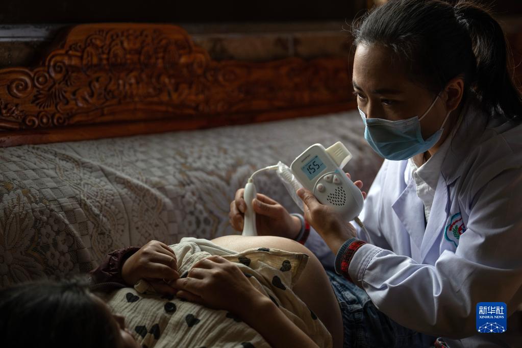 6月12日,陳冰(右)在為扎西央宗進行產檢。新華社記者 費茂華 攝