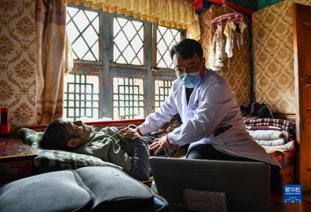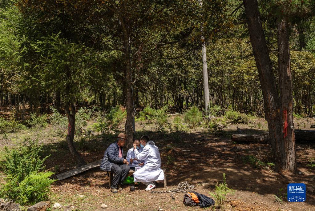6月12日,王彤旭在吞不絨村為珠杰診治。新華社記者 費茂華 攝