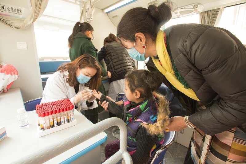 一輛八米多長(zhǎng)的農(nóng)牧民健康體檢車按照年度計(jì)劃,穿梭于比如縣的大小鄉(xiāng)村。車上載有先進(jìn)的DR(數(shù)字影像攝片機(jī))、便攜彩超機(jī)、心電圖機(jī)、便攜檢驗(yàn)設(shè)備。這臺(tái)車是浙江省援藏副指揮長(zhǎng)、比如縣委常務(wù)副書記盛悠聯(lián)系寧波市江北區(qū)政府捐贈(zèng)的。在第八批寧波紹興援藏工作組干部的精心設(shè)計(jì)下,專門向宇通公司定制的一輛功能齊全的大巴體檢車,光車底和改裝費(fèi)用就達(dá)73萬(wàn)元。它與普通體檢車需要接入停泊地市電、自來(lái)水才能運(yùn)行不同,寧波的援藏干部根據(jù)西藏鄉(xiāng)村缺電少水的現(xiàn)狀,多方咨詢方案,最后增加了價(jià)值十萬(wàn)元的高壓電容設(shè)備,實(shí)現(xiàn)了通過車載的小型發(fā)電機(jī)帶動(dòng)50千瓦的DR,并可連續(xù)運(yùn)轉(zhuǎn),這在全國(guó)尚屬首例。車上還配備主動(dòng)式抽水泵,解決上水問題,并配有空調(diào)系統(tǒng)。車子開到哪里,便可不靠外力,進(jìn)行包括拍攝X光片、彩超、心電、檢驗(yàn)等的全面健康體檢,許多鄉(xiāng)鎮(zhèn)衛(wèi)生院也不如這輛體檢車的配置強(qiáng)大。