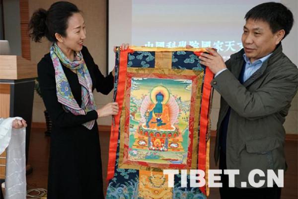 圖為北京藏醫(yī)院和中國科學(xué)院國家天文臺雙方互贈文化制品、圖書。攝影:李偉 魯星杞