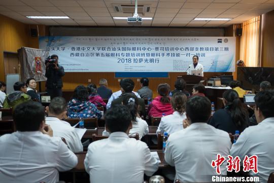 圖為由汕頭大學(xué)香港中文大學(xué)聯(lián)合汕頭國際眼科中心舉辦的西藏自治區(qū)第五屆眼科專題培訓(xùn)班暨2018“拉薩光明行”項(xiàng)目在西藏自治區(qū)藏醫(yī)院啟動。 何蓬磊 攝