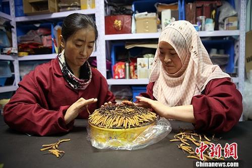 資料圖為青海西寧一家電商正在裝擺1市斤冬蟲夏草(干草),準備發(fā)貨。中新社記者 羅云鵬 攝