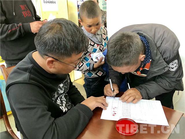 圖為扎西達(dá)娃(左)在確篩工作現(xiàn)場(chǎng)