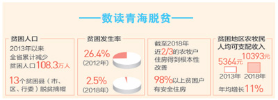 黨的十八大以來,青海省認(rèn)真貫徹落實(shí)習(xí)近平總書記關(guān)于扶貧工作的重要論述,把脫貧攻堅(jiān)作為第一民生來抓,始終堅(jiān)持精準(zhǔn)扶貧精準(zhǔn)脫貧基本方略,緊緊圍繞“扶持誰”“誰來扶”“怎么扶”,全力推進(jìn)黨中央決策部署落實(shí)落地。著力抓好作風(fēng)建設(shè),強(qiáng)化五級書記抓扶貧,層層壓實(shí)責(zé)任,讓干部沉下去,使工作實(shí)起來,補(bǔ)齊黨員干部在認(rèn)識(shí)、感情、能力、作風(fēng)上的短板。聚焦深度貧困地區(qū),加大政策資金投入力度,堅(jiān)持“挪窮窩”與“換窮業(yè)”并舉。圍繞增強(qiáng)貧困地區(qū)和貧困群眾造血功能這個(gè)根本性問題,加強(qiáng)產(chǎn)業(yè)幫扶、技能培訓(xùn)力度,確保貧困群眾持續(xù)穩(wěn)定增收。著力補(bǔ)齊基礎(chǔ)設(shè)施和公共服務(wù)領(lǐng)域短板,行業(yè)部門多方聯(lián)動(dòng)、協(xié)同作戰(zhàn),累計(jì)投入行業(yè)扶貧資金157.7億元,深入實(shí)施十個(gè)行業(yè)扶貧專項(xiàng)行動(dòng)。