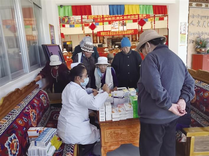 拉薩市衛(wèi)生健康委副主任張國(guó)紅說(shuō):“此次慰問(wèn)活動(dòng)不僅豐富了老人們的精神文化生活,也進(jìn)一步弘揚(yáng)了‘尊老、敬老、愛老、助老’的良好社會(huì)風(fēng)氣?!蔽乃嚮顒?dòng)結(jié)束后,拉薩市人民醫(yī)院的兩名西醫(yī)和城關(guān)區(qū)嘎瑪貢桑社區(qū)衛(wèi)生服務(wù)中心的兩名藏醫(yī)為老人們進(jìn)行了義診服務(wù),根據(jù)老人們的實(shí)際需要免費(fèi)發(fā)放了價(jià)值5000元的藥品。