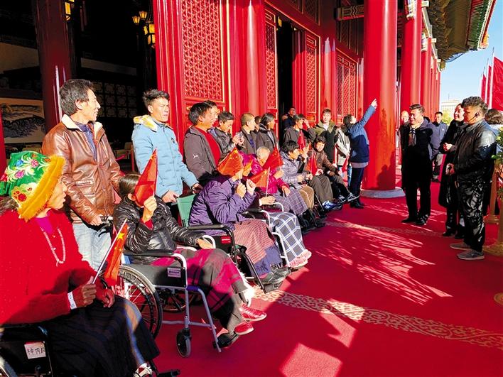 組織赴京治療的大骨節(jié)病患者在天安門(mén),感受黨的恩情。