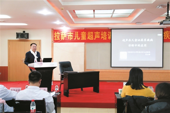 近日,在前任北京“組團(tuán)式”援藏醫(yī)療專家、首都醫(yī)科大學(xué)附屬北京兒童醫(yī)院主任崔晏春的推動(dòng)及拉薩市人民醫(yī)院超聲科全體成員積極配合協(xié)作下,拉薩市兒童超聲培訓(xùn)基地兒童泌尿系統(tǒng)疾病診治學(xué)術(shù)會(huì)在市人民醫(yī)院舉辦,近120名學(xué)員參加此次學(xué)術(shù)會(huì)。
