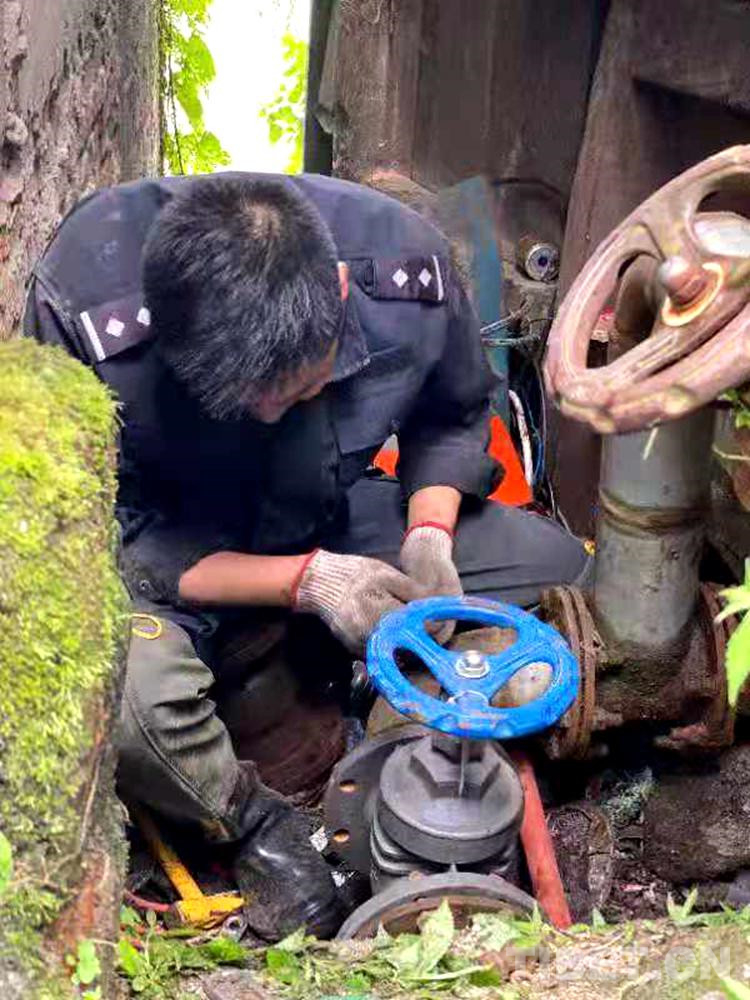 8月16日凌晨,樟木口岸夜晚因突如其來的暴雨造成了泥石流,滾落的石頭擊中了水閘閥門,導致閥門損壞,無法正常通水,從而影響了商貿(mào)城執(zhí)勤點民警正常的飲水。該執(zhí)勤點是根據(jù)口岸限定區(qū)域的需要新增設的點位,民警需要全天候24小時駐守,由于補給較為困難,民警需要用開水煮泡面、自熱米飯等吃飯成了問題。情急之下,民警趙廣發(fā)冒著大雨,頂著被螞蟥咬的危險,憑著自己所學的維修知識,花費了近3個小時,硬著頭皮把它維修好了。