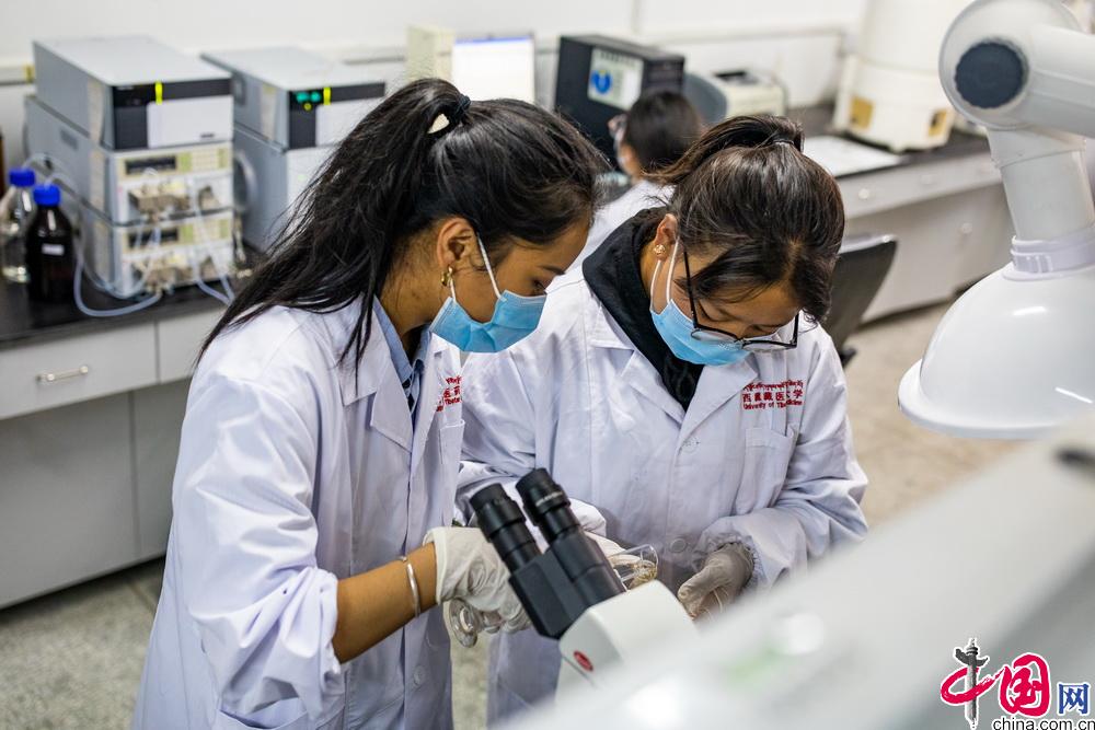 西藏藏醫(yī)藥大學(xué)目前擁有校內(nèi)實(shí)訓(xùn)室24個(gè)、附屬醫(yī)院1家,校外藏藥采認(rèn)藥實(shí)踐實(shí)訓(xùn)基地2個(gè)、非直屬附屬醫(yī)院2家、教學(xué)醫(yī)院7家、實(shí)習(xí)醫(yī)院11家、教學(xué)藥廠(chǎng)2家、實(shí)習(xí)藥廠(chǎng)1家,同時(shí)還擁有國(guó)家中醫(yī)藥管理局藏醫(yī)藥繼續(xù)教育培訓(xùn)基地、中醫(yī)藥優(yōu)勢(shì)特色教育(藏藥)培訓(xùn)基地和中央與地方共建藏醫(yī)特色療法實(shí)踐基地等重要教學(xué)基地。圖為學(xué)校學(xué)生在實(shí)驗(yàn)室中進(jìn)行藥物試驗(yàn)。中國(guó)網(wǎng)記者 鄭亮攝