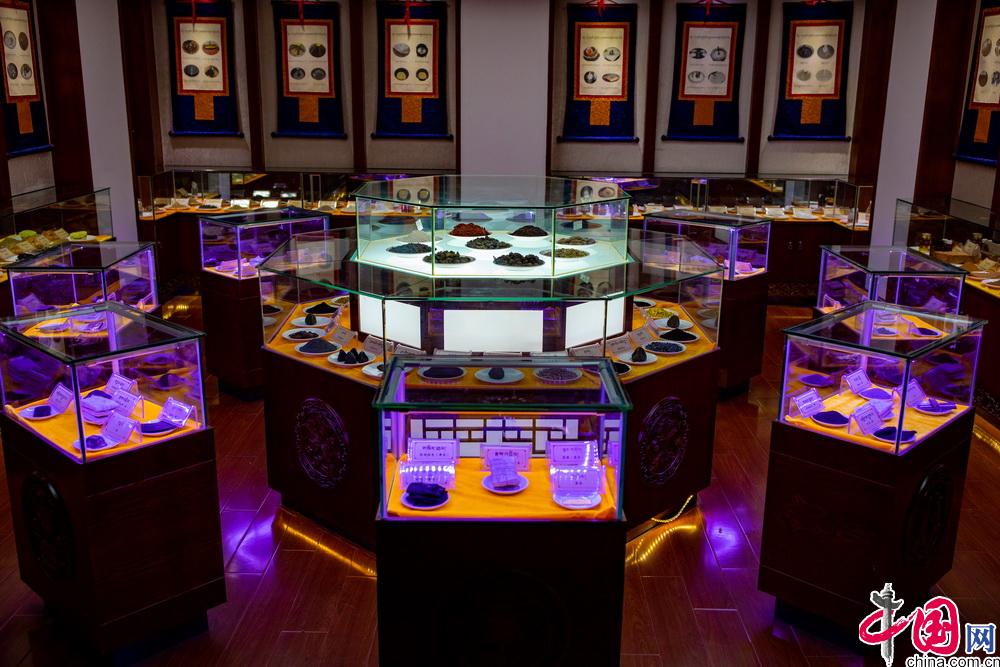 西藏藏醫(yī)藥大學(xué)保護(hù)傳統(tǒng)文化方面一直做著不懈的努力,其中“藏醫(yī)水銀提煉法”、“藏藥仁青常覺(jué)配伍技藝”、“藏醫(yī)外治療法”等項(xiàng)目被國(guó)務(wù)院批準(zhǔn)為非物質(zhì)文化保護(hù)遺產(chǎn)。《四部醫(yī)典·后續(xù)醫(yī)典部注釋》入選第一批《國(guó)家珍貴古籍名錄》。2018年,“索瓦日巴——藏藥浴法”被列入聯(lián)合國(guó)人類(lèi)非物質(zhì)文化遺產(chǎn)代表作名錄。同時(shí)學(xué)校還擁有國(guó)家非物質(zhì)文化遺產(chǎn)保護(hù)傳承人8名。圖為學(xué)校內(nèi)展示的藏藥提煉方面所使用的原材料。中國(guó)網(wǎng)記者 鄭亮攝