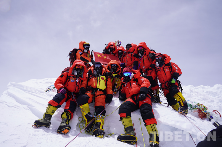 圖為2020年珠峰高程測量登山隊隊員在珠峰合影留念 攝影:西藏登山學(xué)校 扎西次仁