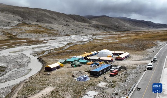這是卓奧友峰登山大本營(yíng),科考隊(duì)員在這里開(kāi)展部分急進(jìn)高原人群健康研究(10月1日攝,無(wú)人機(jī)照片)。新華社記者 晉美多吉 攝