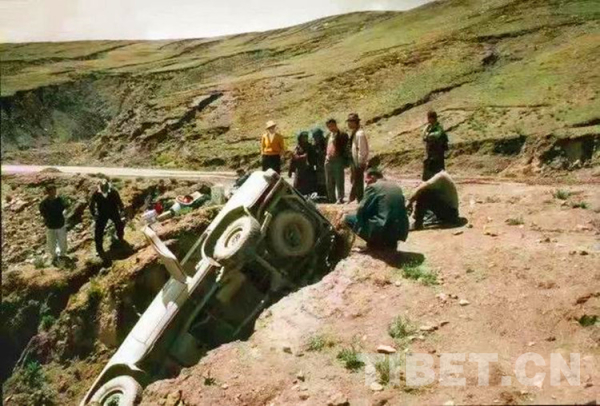 圖為1997年,考古隊在西藏自治區(qū)阿里地區(qū)措拉山發(fā)生了翻車事故