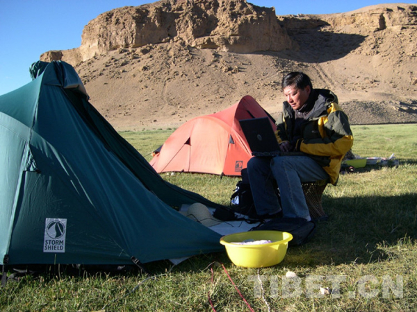 圖為10余年前,霍巍在阿里地區(qū)穹窿銀城調(diào)查施工組