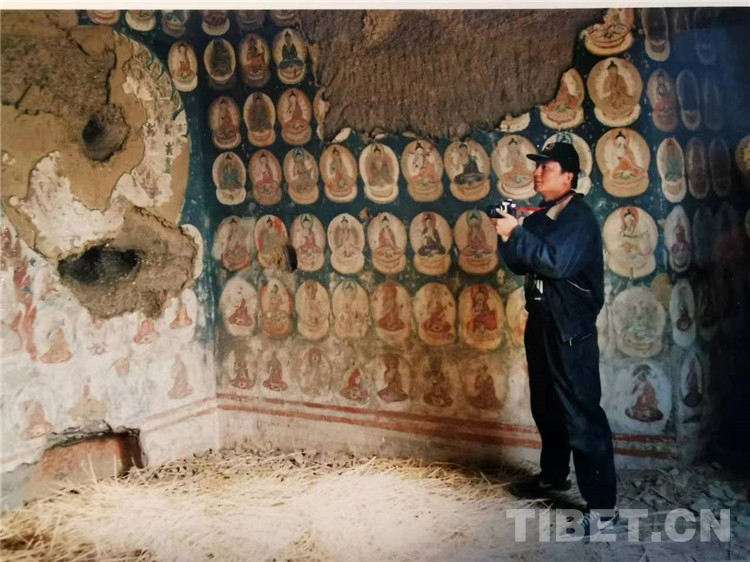 圖為霍巍教授在西藏阿里考察佛教石窟壁畫
