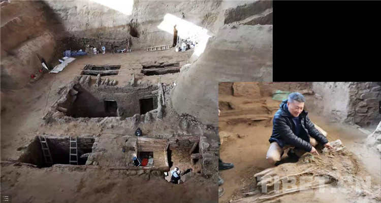 圖為霍巍教授在考古發(fā)掘現場