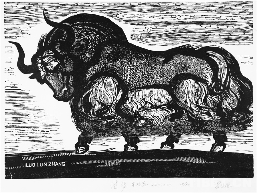 如果非要說(shuō)我在版畫(huà)技法上有什么創(chuàng)新,參照西藏匠人刻經(jīng)文,在石頭上刻出來(lái)然后印出來(lái)也許就算。這不是一般石版畫(huà)概念,那叫石印,平版印刷;我這是凹版印刷。刻起來(lái)很費(fèi)勁,我也不管費(fèi)不費(fèi)勁。我有一批這樣的石刻作品。綜合版作品手法較多,我通常分別在石板和木板上刻,然后套起來(lái)印。如果搞學(xué)術(shù)交流,也許值得一談。至于說(shuō)到創(chuàng)新,第一我不認(rèn)為我有什么創(chuàng)新,第二我不認(rèn)為在藝術(shù)上、在美術(shù)上能夠輕易談創(chuàng)新這個(gè)詞。還有第三個(gè)觀點(diǎn):不需要?jiǎng)?chuàng)新。很簡(jiǎn)單,你先把傳統(tǒng)學(xué)到手再說(shuō)。既是傳統(tǒng),就有它的存在理由,否則早就夭折了,還傳什么統(tǒng)呢?傳,而且統(tǒng)??!統(tǒng)是什么意思?基調(diào)是它統(tǒng)一起來(lái)的。先把傳統(tǒng)學(xué)到手,爐火純青了,神來(lái)之筆出現(xiàn)了,才有可能有所創(chuàng)造?;A(chǔ)是重要的。