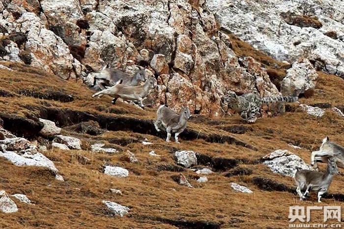 雪豹沖向巖羊群。央廣網(wǎng)發(fā) 馮剛 攝