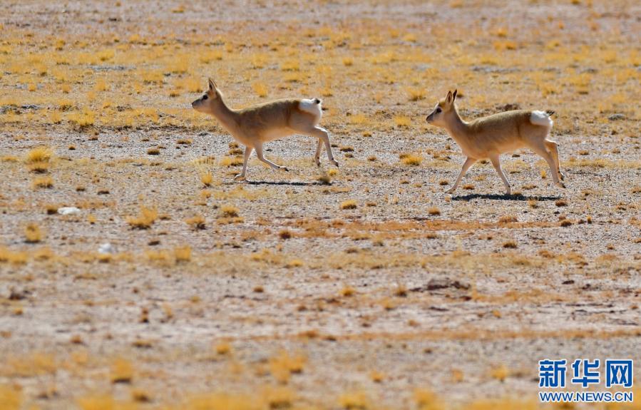 藏北高原上的藏羚羊(1月15日攝)。新華社記者 沈虹冰 攝