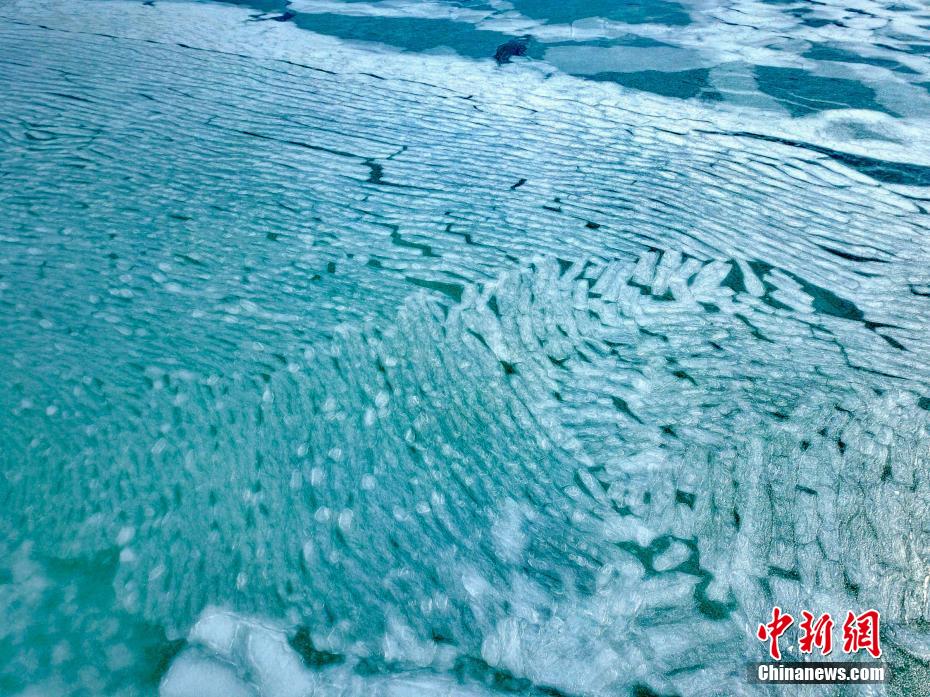 1月31日,攝影師在使用無人機航拍麻米湖時發(fā)現(xiàn),部分湖冰凍裂成“指紋狀”,十分神奇、壯觀。圖為麻米湖凍成了“指紋狀”。 曹枝清 攝