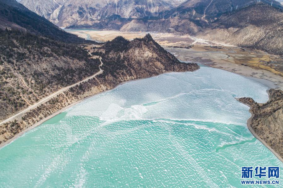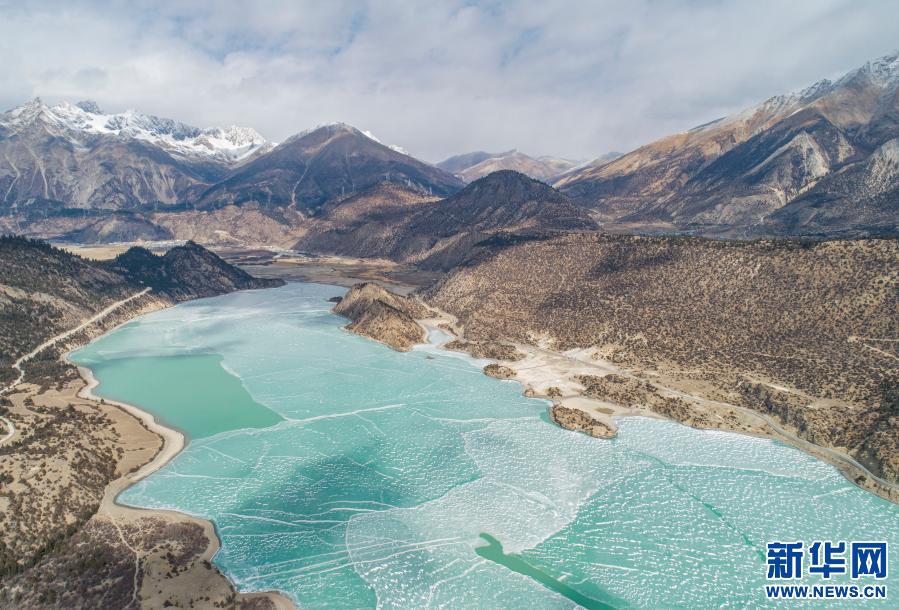 這是2月16日拍攝的然烏湖(無人機照片)。新華社記者 孫非 攝